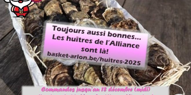 Le paiement se fait apar virement au compte BE60 0689 4397 9270 (GKCCBEBB) au nom de Royal Basket Alliance Arlon avec « huitres 2025 – » et votre nom en commentaire.