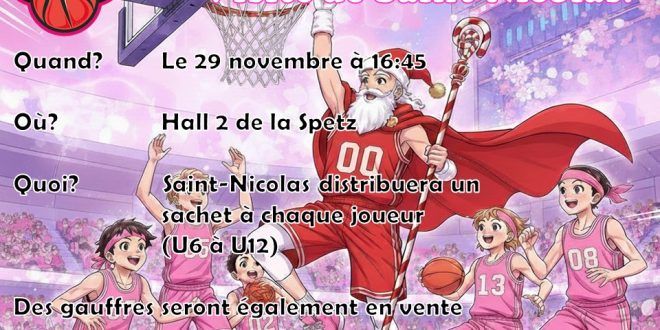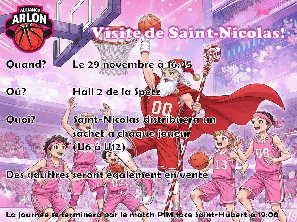 Saint-Nicolas sera présent à la Spetz ce samedi 29 novembre à partir de 16:45 dans le Hall 2. Il distribuera à chaque petit basketteur de U6 à U12 un sachet de friandises.